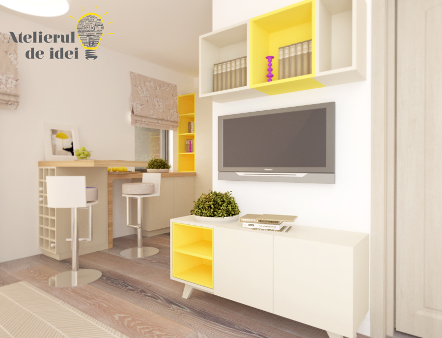 Am avut la dispozitie un buget relativ redus pentru a transforma interiorul atat din punct de vedere coloristic cat si functional, cu ample spatii de depozitare si un loc de luat masa pentru doua persoane. Bucataria a fost marita si regandita mai mult din punct de vedere practic, cu blat de lucru intors si pe peretele cu fereastra – care acum este frumos incadrata – si accesorizata cat sa gasesti totul la locul lui de fiecare data. Mobilierul a fost special ales intr-o culoare deschisa, care sa ofere senzatia de spatiu. Noutatea si prospetimea au facut casa buna, beneficiara bucurandu-se acum de caldura si intimitatea unui nou camin.